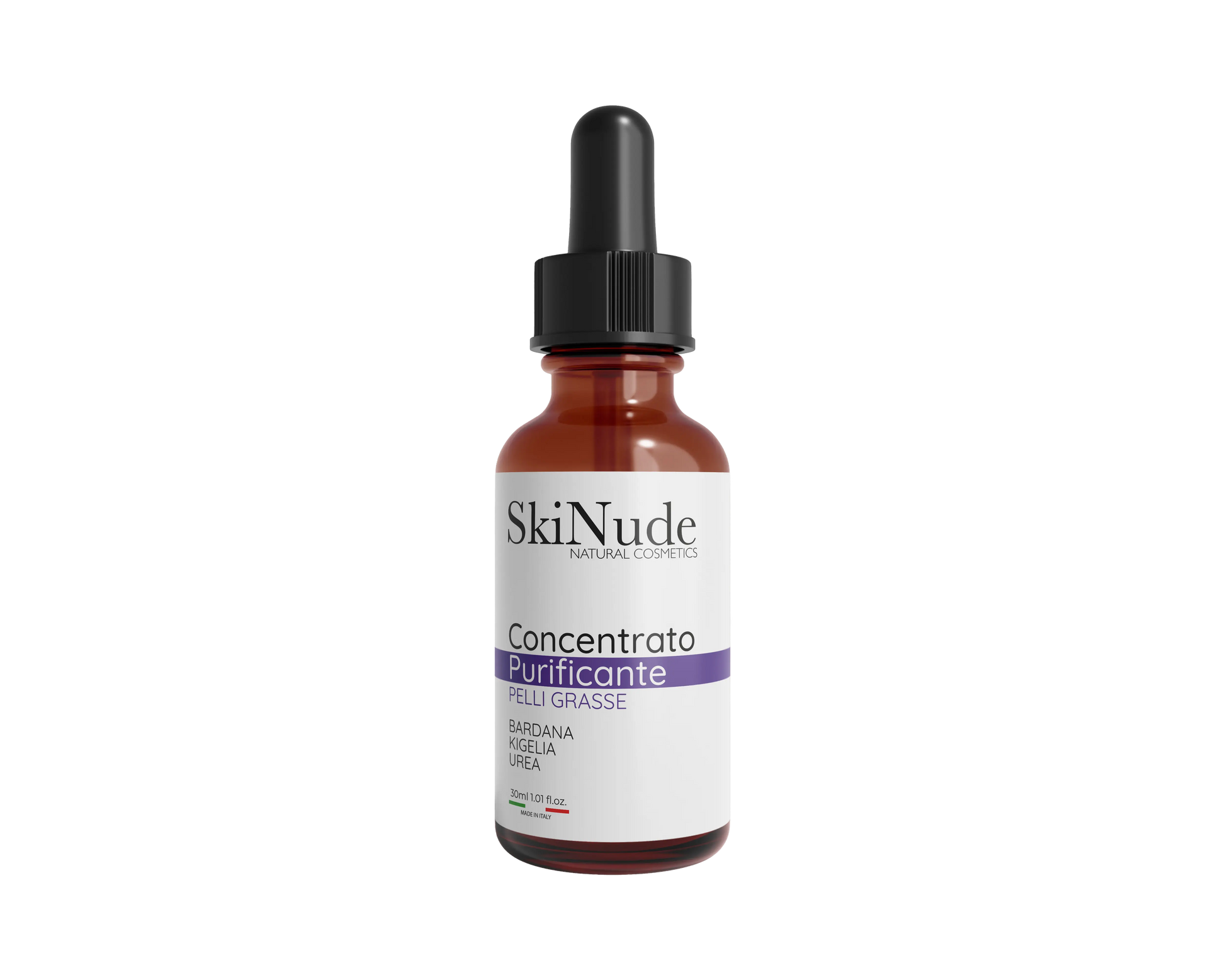 Il siero viso concentrato purificante per pelli grasse Skinude grazie alla presenza di bardana aiuta a purificare e migliorare le imperfezioni della pelle grassa, acneica, impura e mista rendendola più bella e piacevole.
